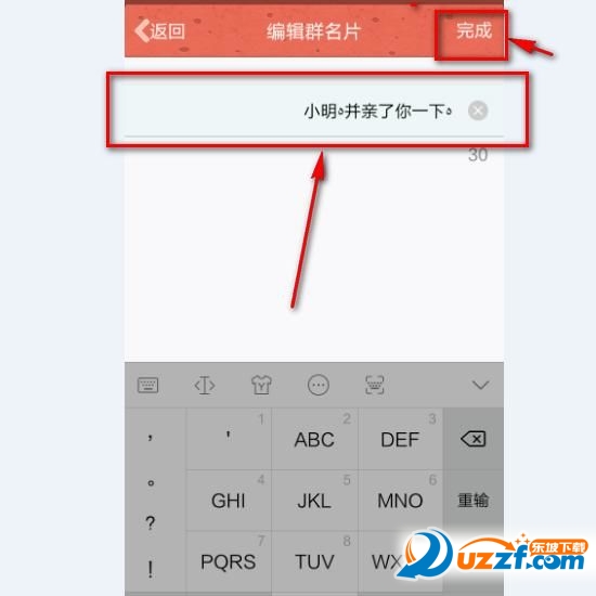 3、如图,这里我就修改我的群名片为:?并亲了你一下?小明。(把这个名片复制然后粘贴到你的群名片,粘贴以后名字会出现在左边)。