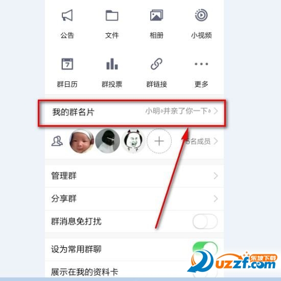 2、然后点击“我的群名片”,然后开始修改群名片。