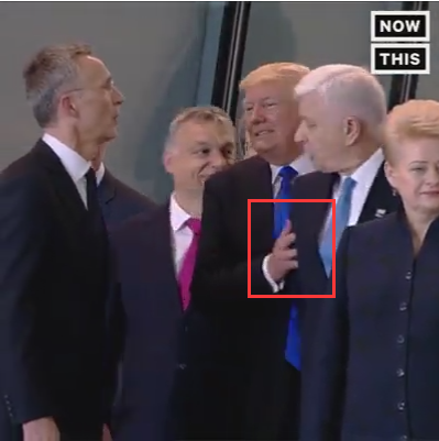 最为网友关注的还是特朗普先生和他的“神手”之间的故事:“握手界杠把子”特朗普的“握手神功”竟然在这次外交访问中被法国新上任总统马克龙完美破解;在和梵蒂冈教皇方济“调情”过程中,拿小拇指“勾搭”的特朗普被教皇无情打了手背;在抵达机场下舷梯时,特朗普想牵夫人的小手手被“不经意”拒绝……这还不是最尴尬的,在北约成员合影前,特朗普宝宝用小手手成功推开黑山共和国总理马尔科维奇。