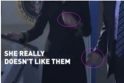特朗普与梅拉尼娅周二坐空军一号到达罗马,二人从机舱步出,向外挥手之后,淮备下机之际,特朗普伸出左手想拖妻子的手。不过未知是有意还是无意,梅拉尼娅立即举手拨头发,避开丈夫的手。