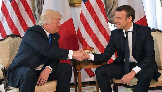 美法总统上演“握手之战” 握手界杠把子地位岌岌可危