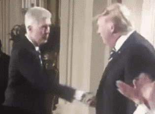 美国最高法院大法官的戈萨奇也领教过这“握手神功”。虽然年纪比特朗普整整年轻了20岁,但在特朗普的握手神功下,站稳都显得有些困难。