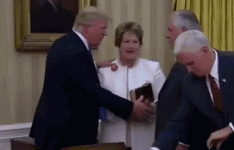 回过头来的格里包斯凯特则以为是特朗普要跟她说话,两人交谈起来。